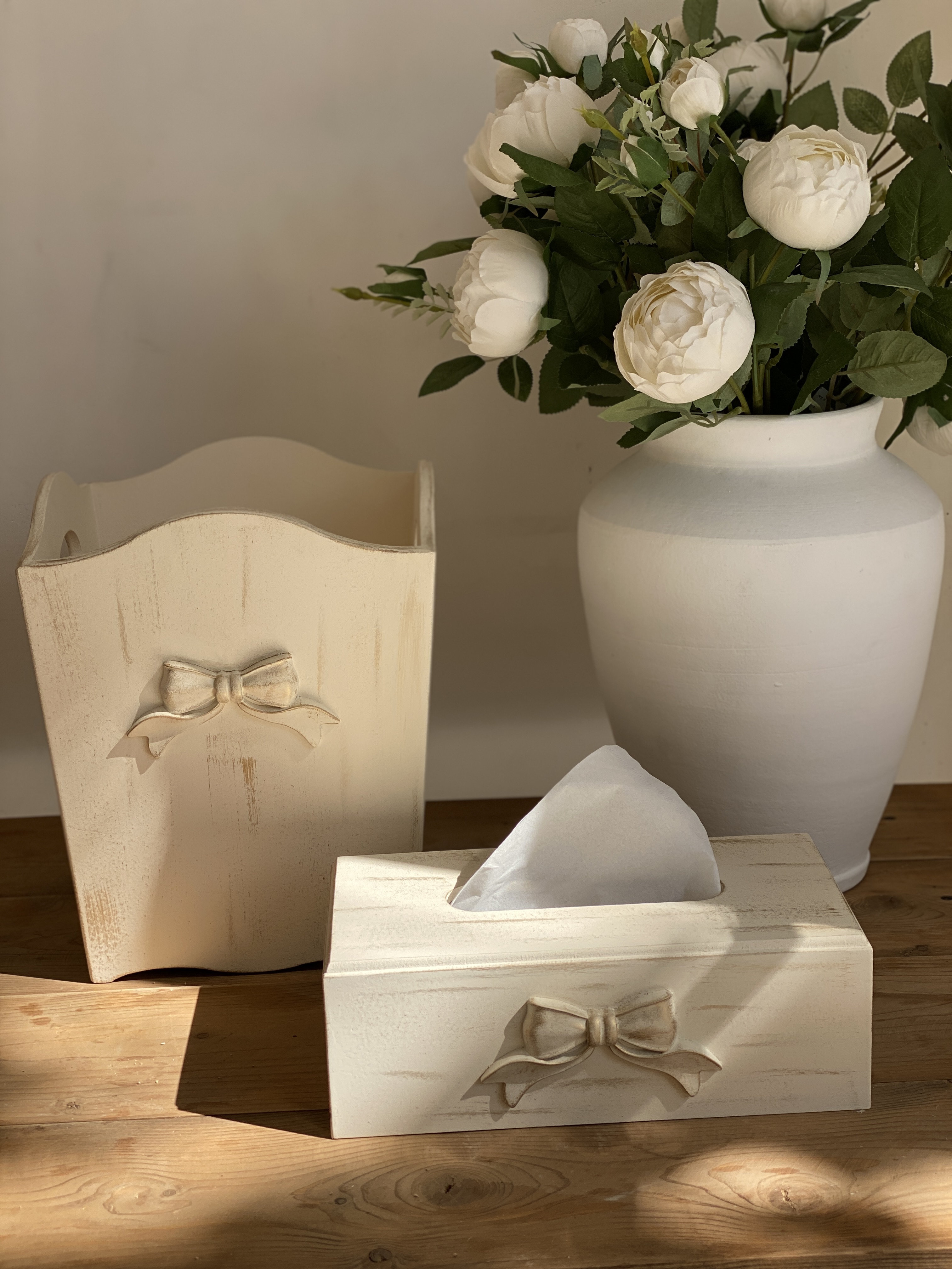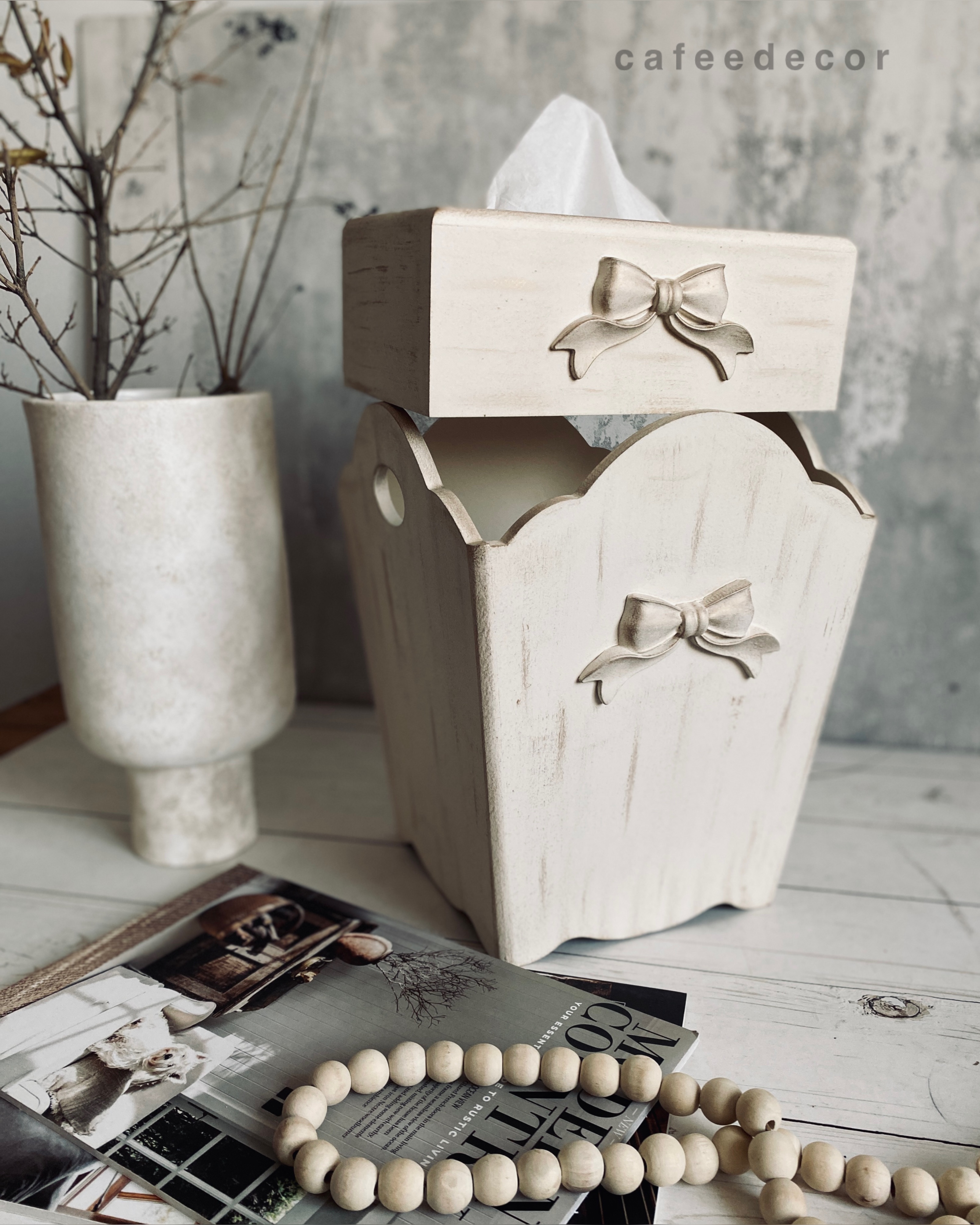 ست سطل و جادستمال کاغذی چوبی پاپیون دار