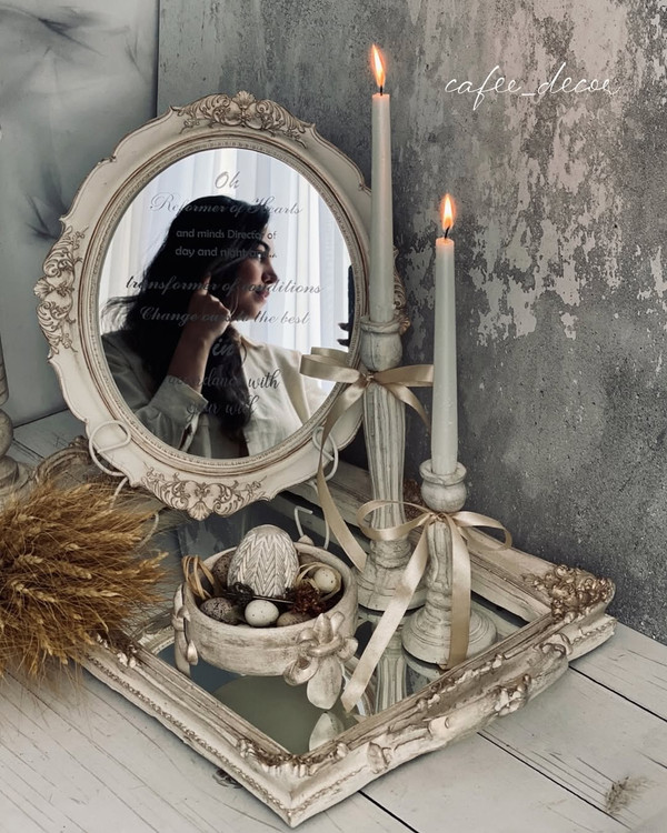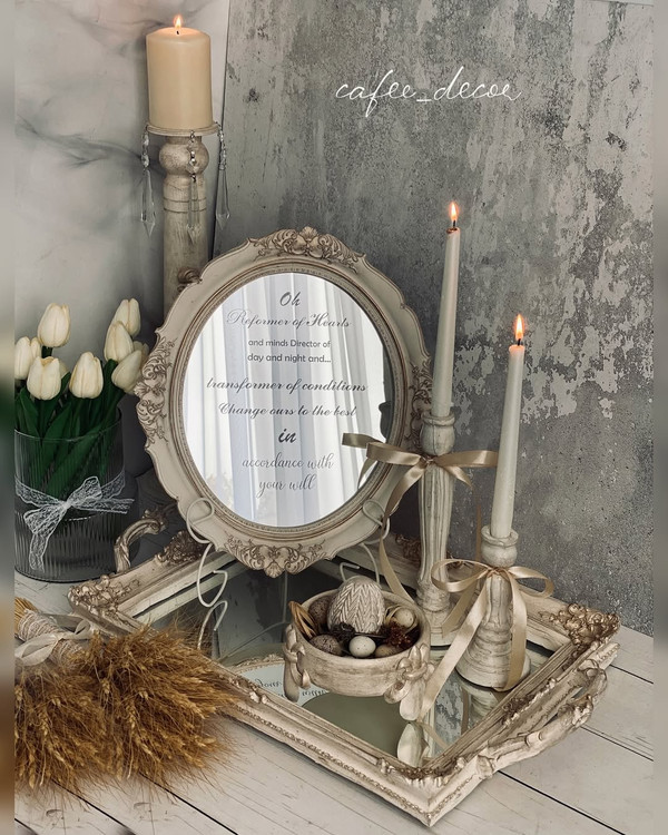 آینه با متن (دعای سال نو )به لاتین و رنگ کرم با پتینه طلایی (قابل تغییر )